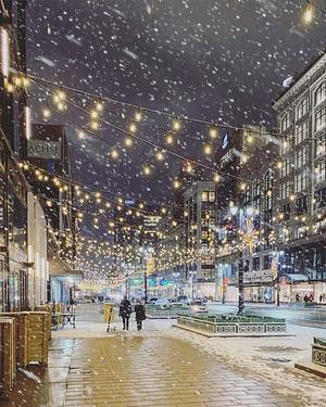 Snowy evening on Woodward Ave - Detroit