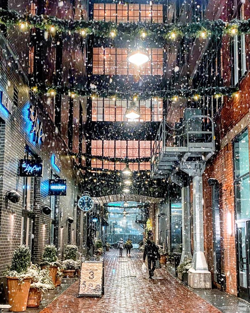 Light snow fall in Parker's Alley, Detroit.